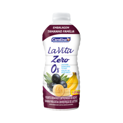 Ingredientes: Leite desnatado e/ou leite desnatado reconstituído, preparado de açaí e banana (água, polpa de açaí, amido modificado, polpa de banana, aroma idêntico ao natural de banana, corante caramelo IV INS 150d, acidulante ácido cítrico INS 330, conservante sorbato de potássio INS 202, aroma idêntico ao natural de açaí e corantes artificiais azorrubina INS 122 e azul brilhante FCF INS 133), amido modificado, enzima lactase, fermento lácteo, estabilizantes: gelatina (INS 428) e pectinas (INS 440) e mix de edulcorantes: aspartame (INS 951) e acessulfame de potássio (INS 950). ALÉRGICOS: CONTÉM LEITE E DERIVADOS. NÃO CONTÉM GLÚTEN. CONTÉM FENILALANINA. DIABÉTICOS: CONTÉM GLICOSE E GALACTOSE. CONSUMIR PREFERENCIALMENTE SOB ORIENTAÇÃO DE NUTRICIONISTA OU MÉDICO.
