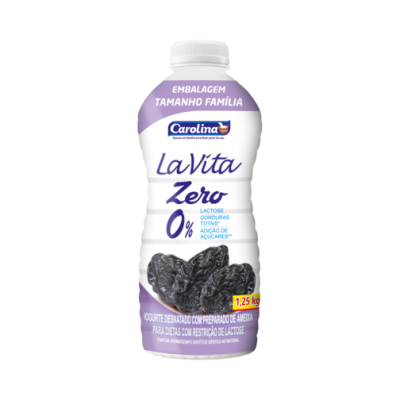 Ingredientes: Leite desnatado e/ou leite desnatado reconstituído, preparado de ameixa (água, amido modificado, polpa de ameixa, corantes caramelo IV INS 150d e corante caramelo I INS 150a, acidulante ácido cítrico INS 330, conservante sorbato de potássio INS 202 e aromatizante), amido modificado, enzima lactase, fermento lácteo, estabilizantes: gelatina (INS 428) e pectina (INS 440) e mix de edulcorantes: aspartame (INS 951) e acessulfame de potássio (INS 950). ALÉRGICOS: CONTÉM LEITE E DERIVADOS. NÃO CONTÉM GLÚTEN. CONTÉM FENILALANINA. DIABÉTICOS: CONTÉM GLICOSE E GALACTOSE. CONSUMIR PREFERENCIALMENTE SOB ORIENTAÇÃO DE NUTRICIONISTA OU MÉDICO.