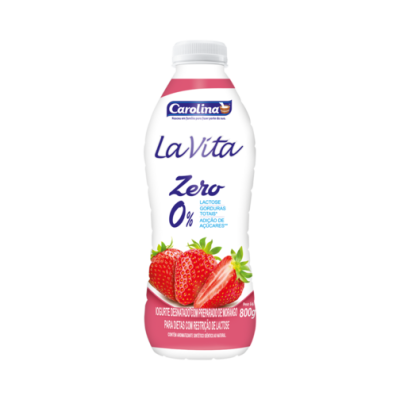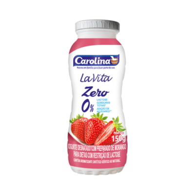 Ingredientes: Leite desnatado e/ou leite desnatado reconstituído, preparado de morango (água, amido modificado, polpa de morango, corante carmim de cochonilha INS 120, acidulante ácido cítrico INS 330, conservante sorbato de potássio INS 202, aromatizante e espessante carboximetilcelulose INS 466), amido modificado, enzima lactase, fermento lácteo, estabilizantes: gelatina (INS 428) e pectina (INS 440) e mix de edulcorantes: aspartame (INS 951) e acessulfame de potássio (INS 950). ALÉRGICOS: CONTÉM LEITE E DERIVADOS. NÃO CONTÉM GLÚTEN. CONTÉM FENILALANINA. DIABÉTICOS: CONTÉM GLICOSE E GALACTOSE. CONSUMIR PREFERENCIALMENTE SOB ORIENTAÇÃO DE NUTRICIONISTA OU MÉDICO.