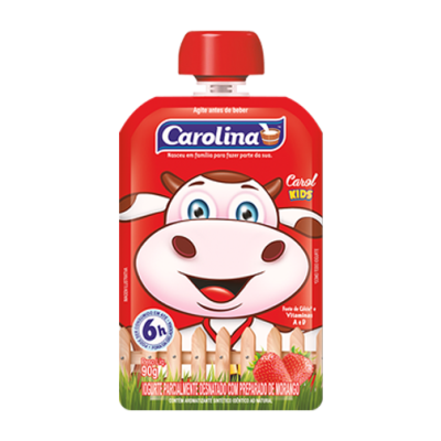 Ingredientes: Leite pasteurizado integral e/ou leite em pó integral reconstituído, leite pasteurizado desnatado e/ou leite em pó desnatado reconstituído, açúcar, preparado de morango (água, polpa de morango, amido modificado, corante natural carmim de cochonilha INS 120, aroma idêntico ao natural de morango, conservante sorbato de potássio INS 202 e acidulante ácido cítrico INS 330), amido modificado, fermentos lácteos, mix de vitaminas e minerais (vitamina A, vitamina D e fosfato tricálcico), estabilizantes gelatina (INS 428) e goma guar (INS 412) e corante natural carmim de cochonilha (INS 120). ALÉRGICOS: CONTÉM LEITE DE DERIVADOS. CONTÉM LACTOSE. NÃO CONTÉM GLÚTEN.